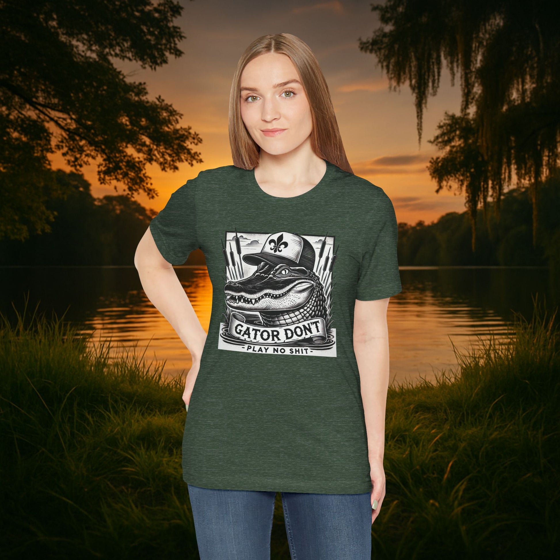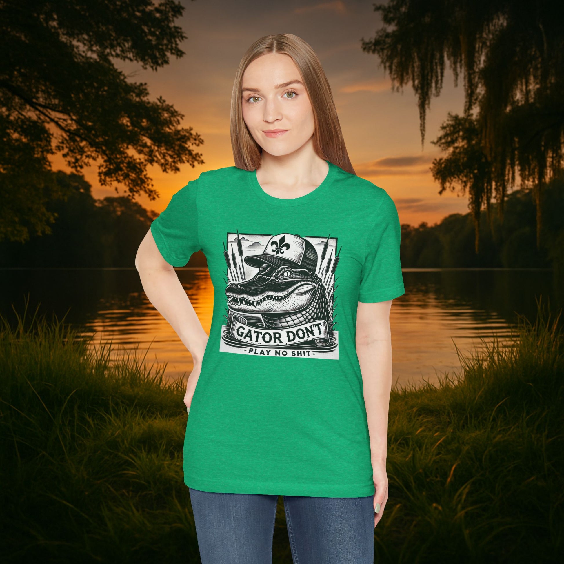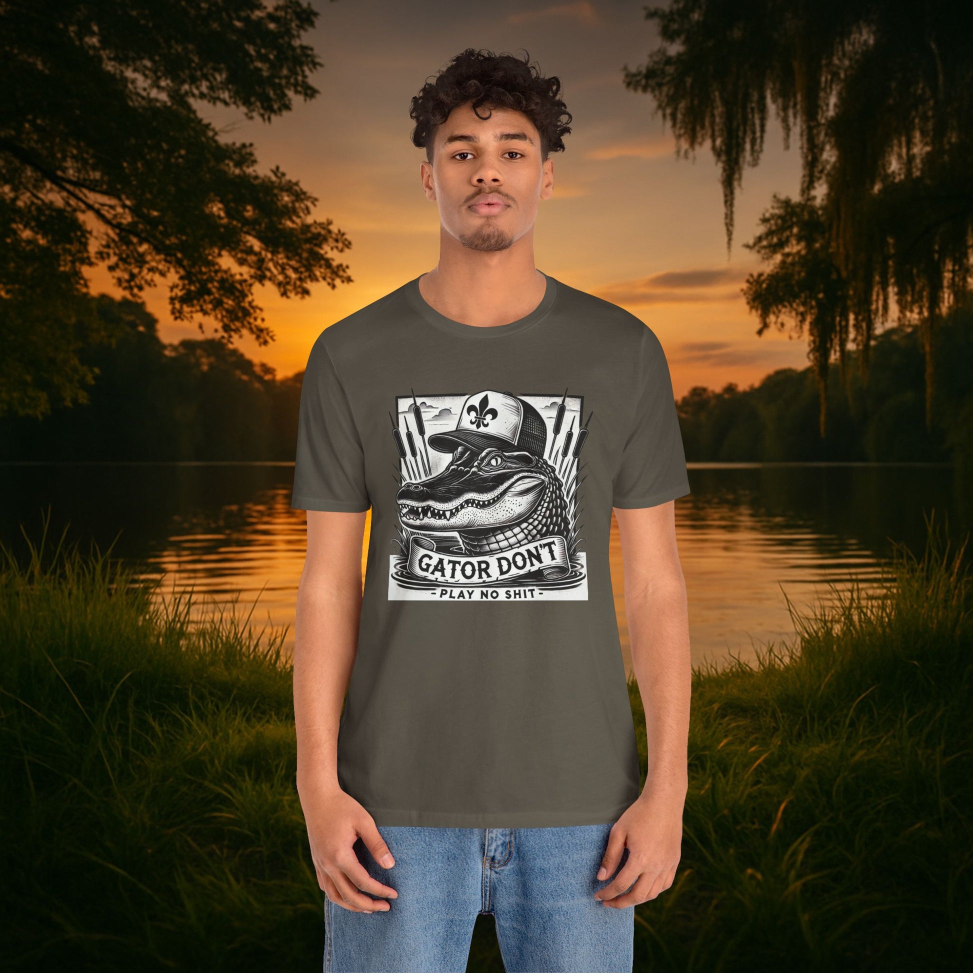The “Gator Don’t Play No Sh*t” Tee delivers bayou-certified swagger with bold, vintage detail. Featuring a sharp gator graphic and classic Southern attitude, this shirt is more than a joke — it’s a statement.