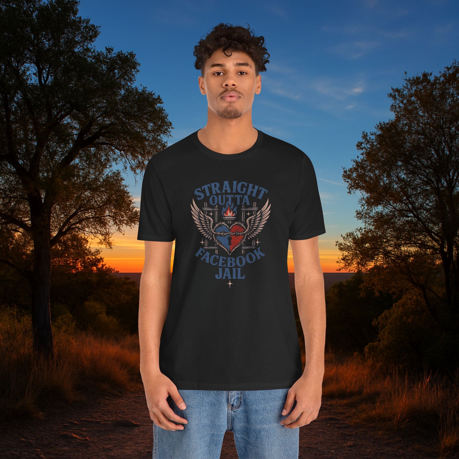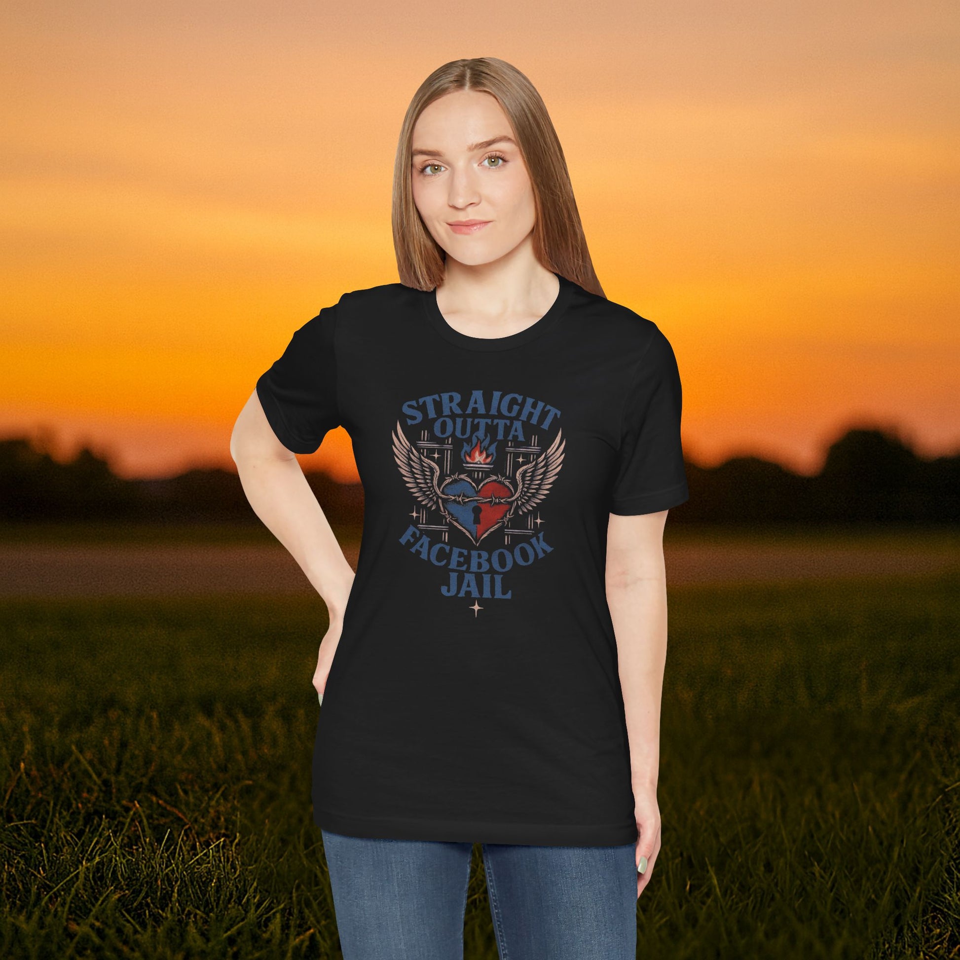 #FacebookJail #FreeSpeech #BackOnTheStreets #FunnyTShirt #ViralTee #ConversationStarter #SayWhatYouWant #StatementShirt #RedWhiteAndBlue #TikTokMadeMeBuyIt #BannedButBack #OutspokenAF #InternetJail #ExpressYourself #TexasEsoteric