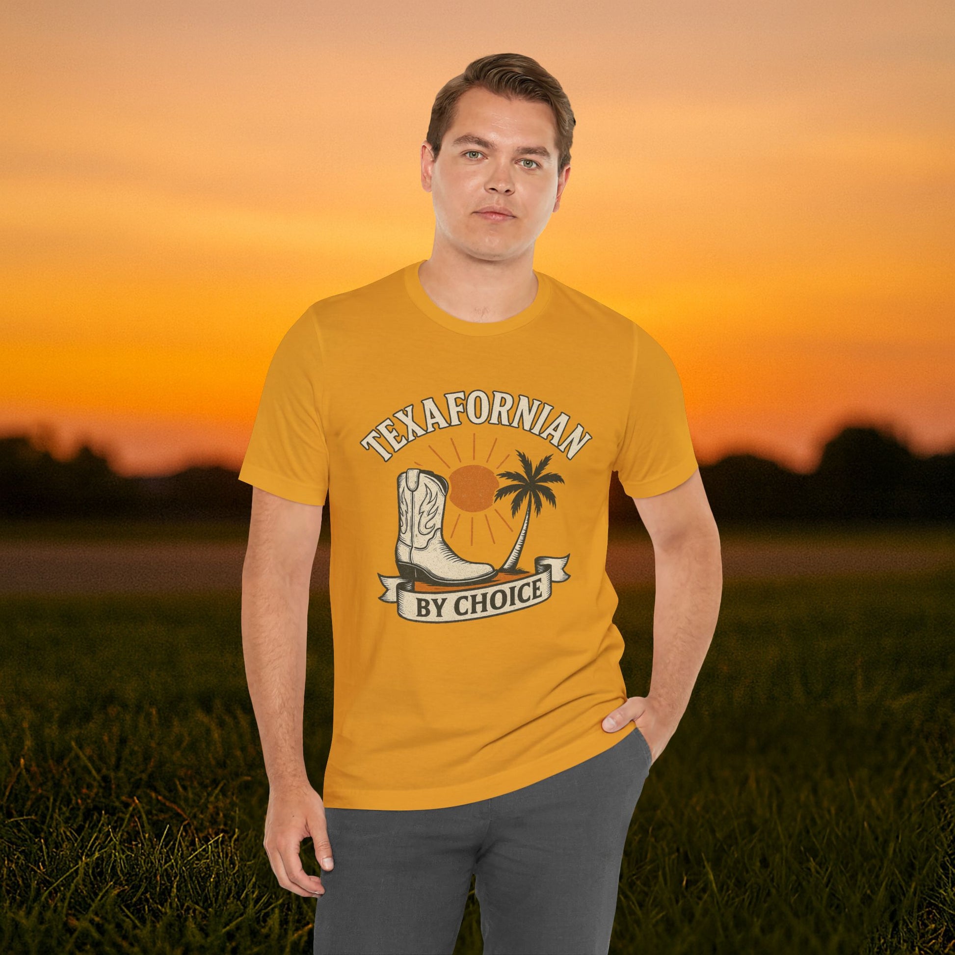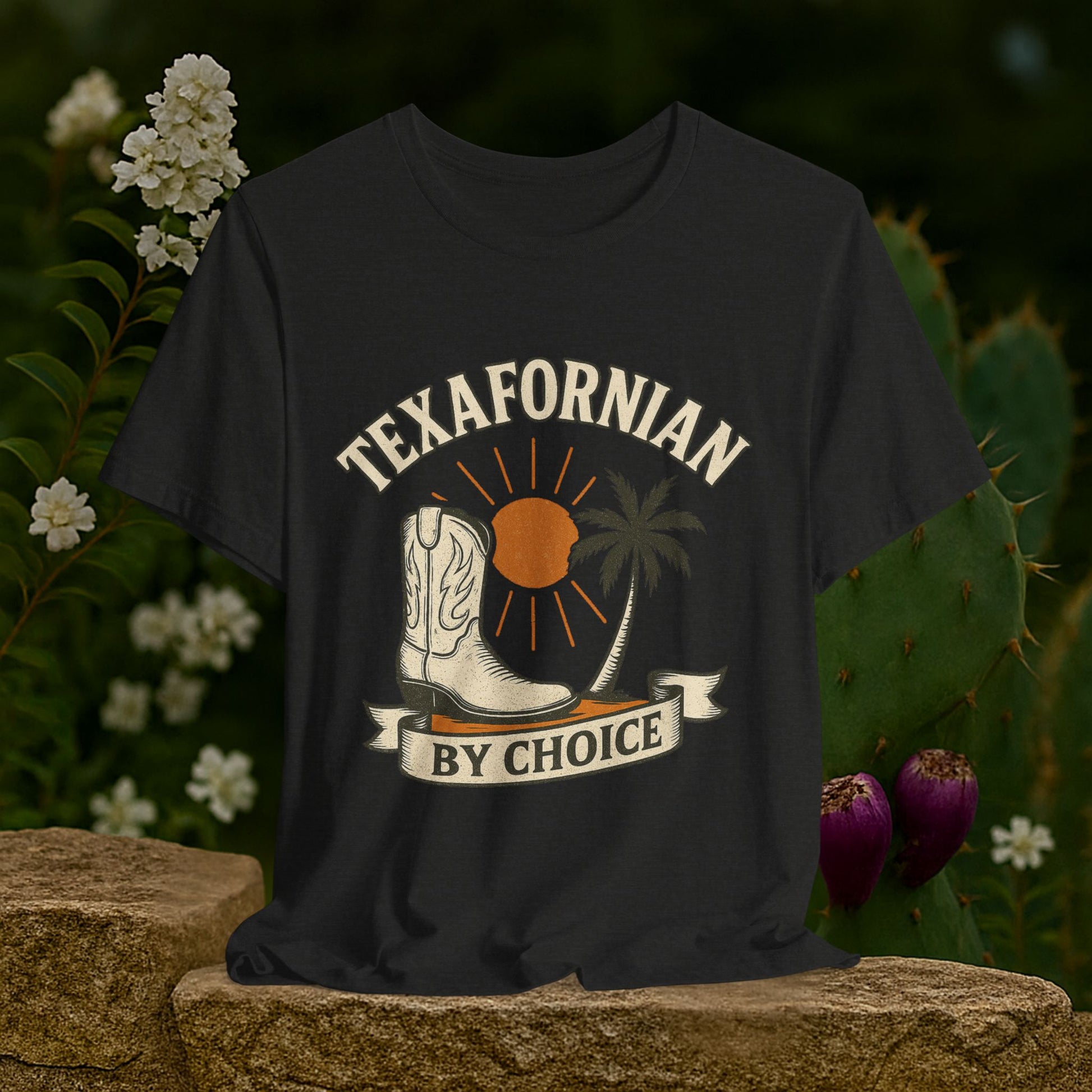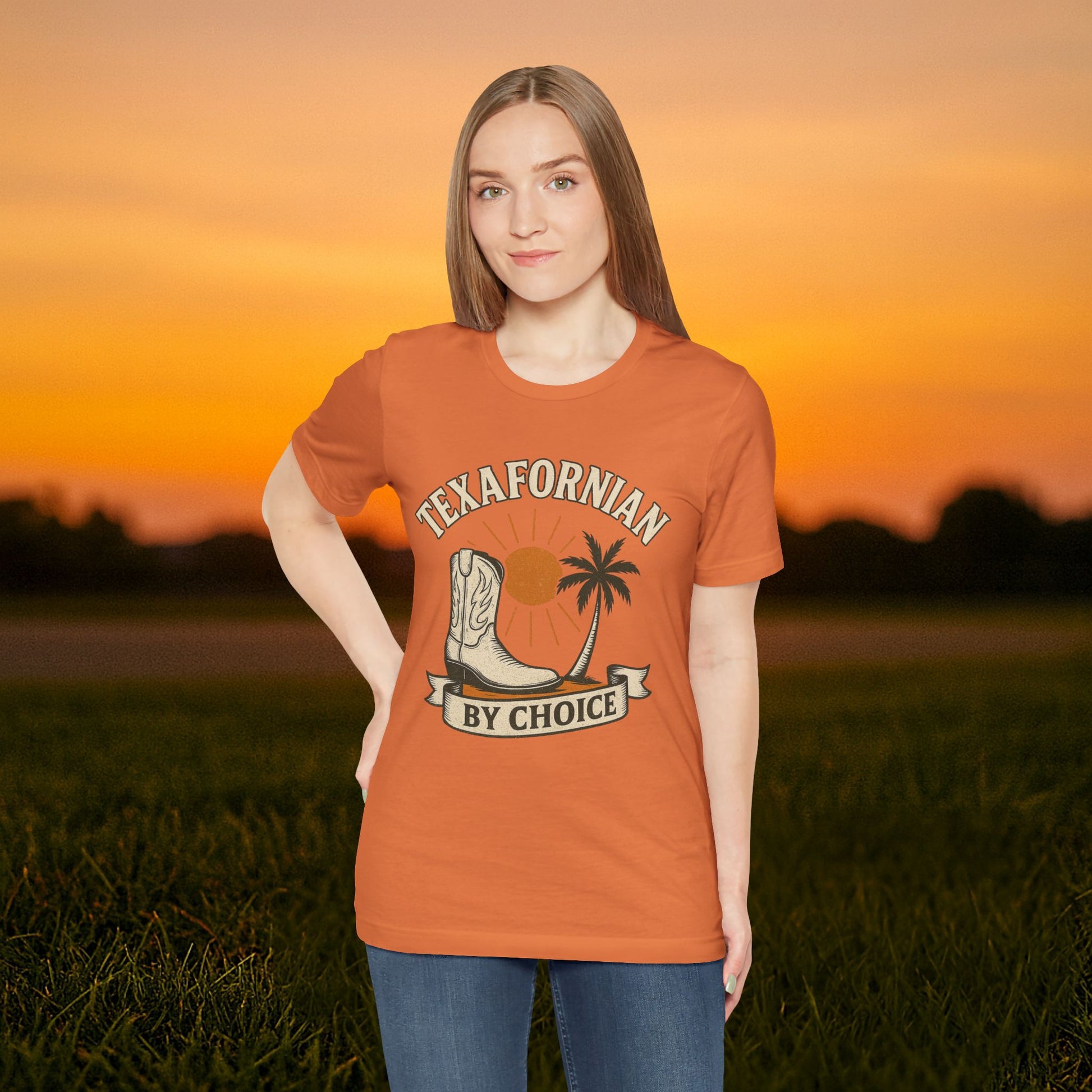 In the last decade, more than a million Californians have chosen Texas. The Texaphornian by Choice – Vintage Cream Edition is your welcome home badge, blending bold Lone Star spirit with timeless vintage style. With its warm cream tones, sun-kissed orange highlights, and classic black detailing, this tee feels right at home on every color it rests on — from burnt orange and mustard to black, brown, and heather. Wear it like the flag of your new tribe: proud, grounded, and undeniably Texan. A Texas Esoteric original.