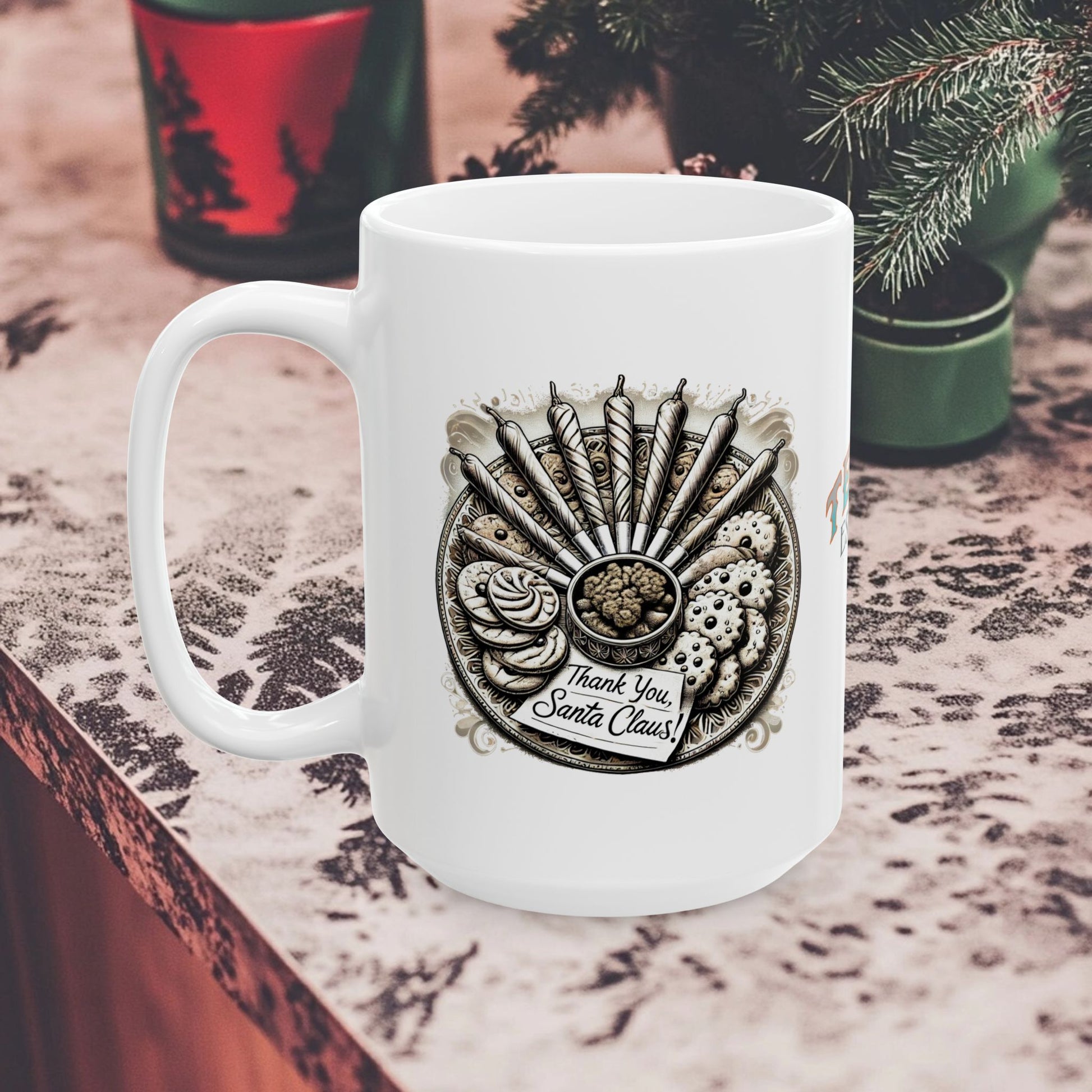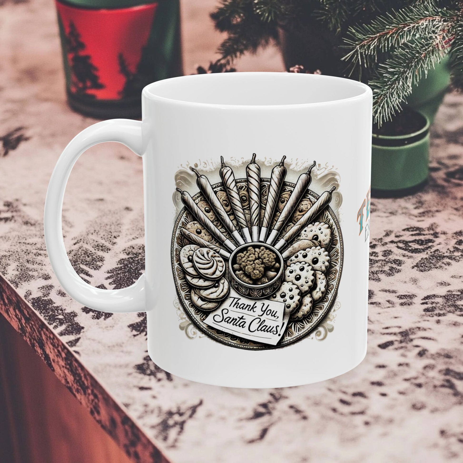 Add a cheeky twist to your holiday traditions with the “Thank You, Santa Claus” ceramic mug, part of the Grinchy Texas Christmas Collection. This double-sided mug features Santa’s classic cookie plate—but with a little Texas Esoteric sacred herbal delight baked in and ready to keep Santa extra jolly and stress free this year.