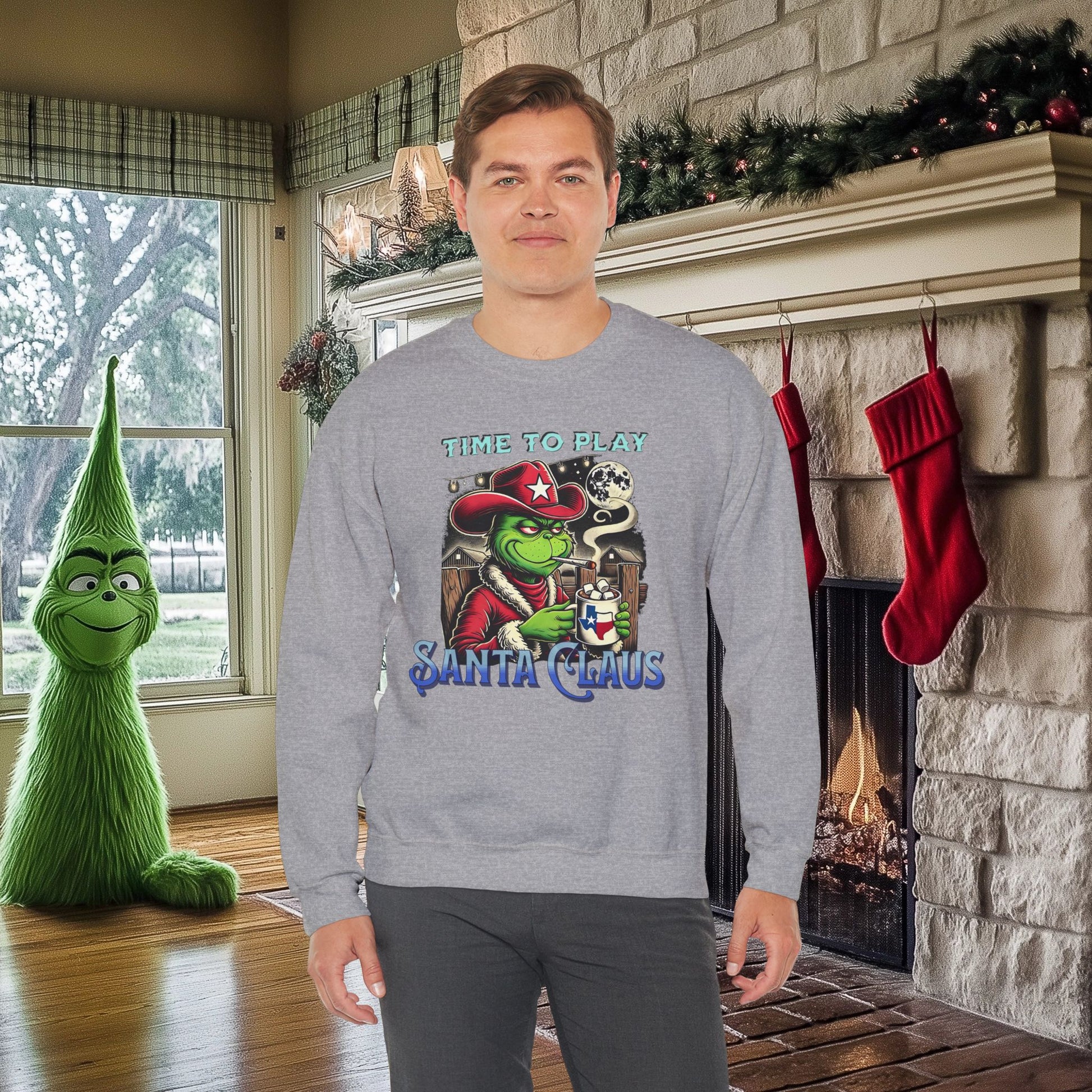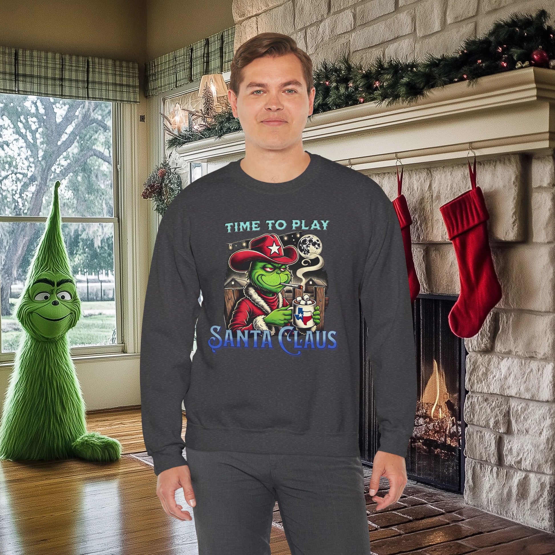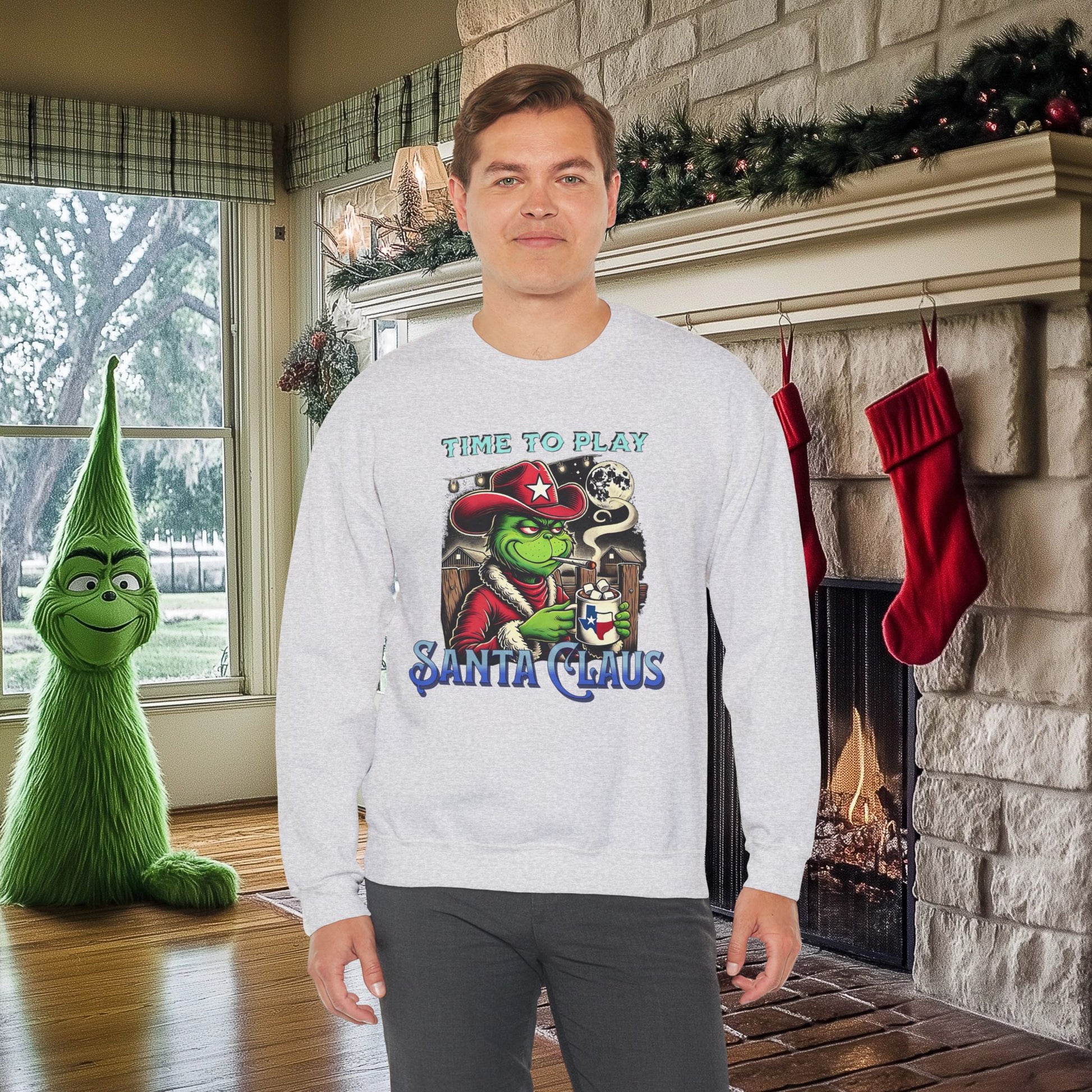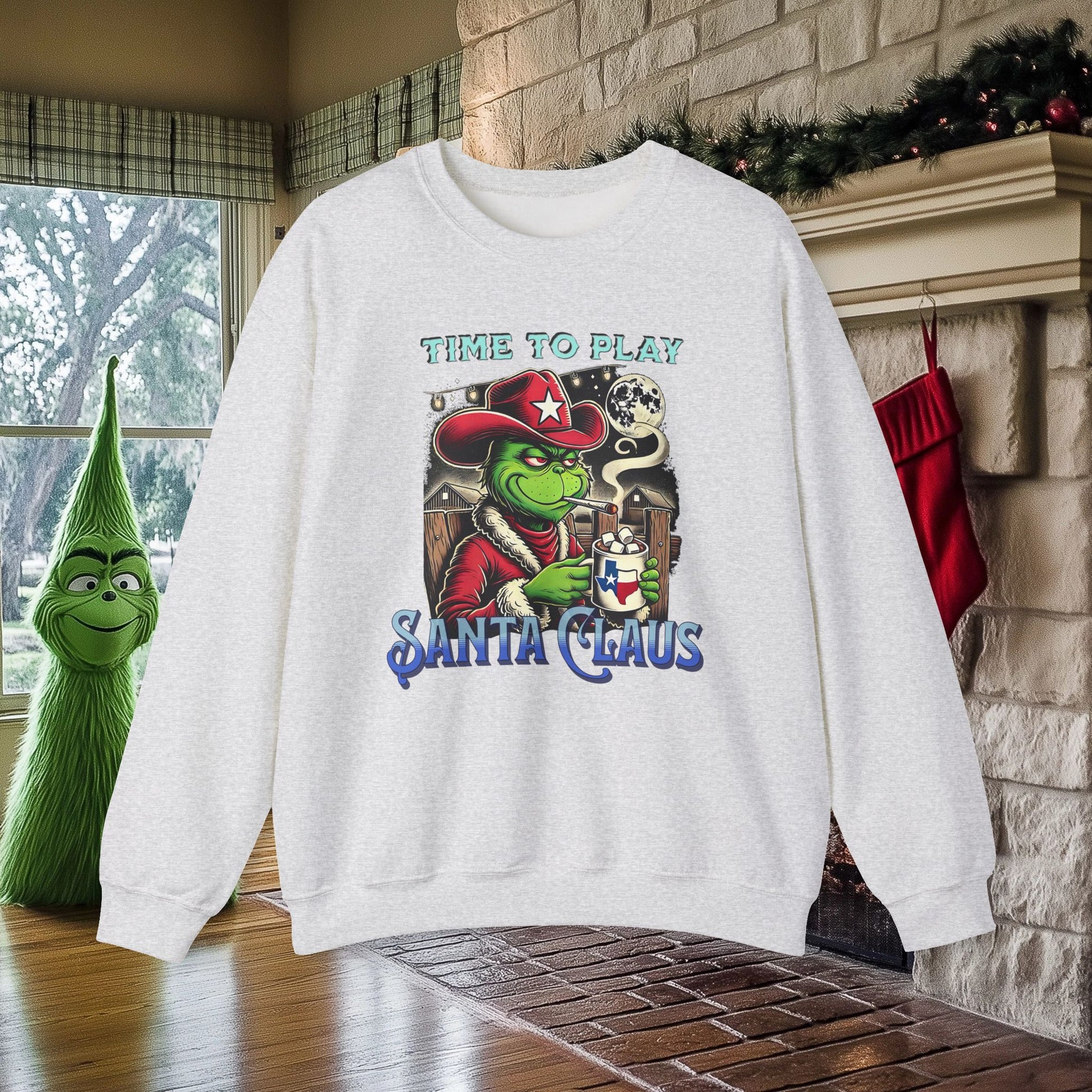 "Time to Play Santa Claus" Grinch-Inspired Texas Christmas Sweatshirt – Funny Holiday