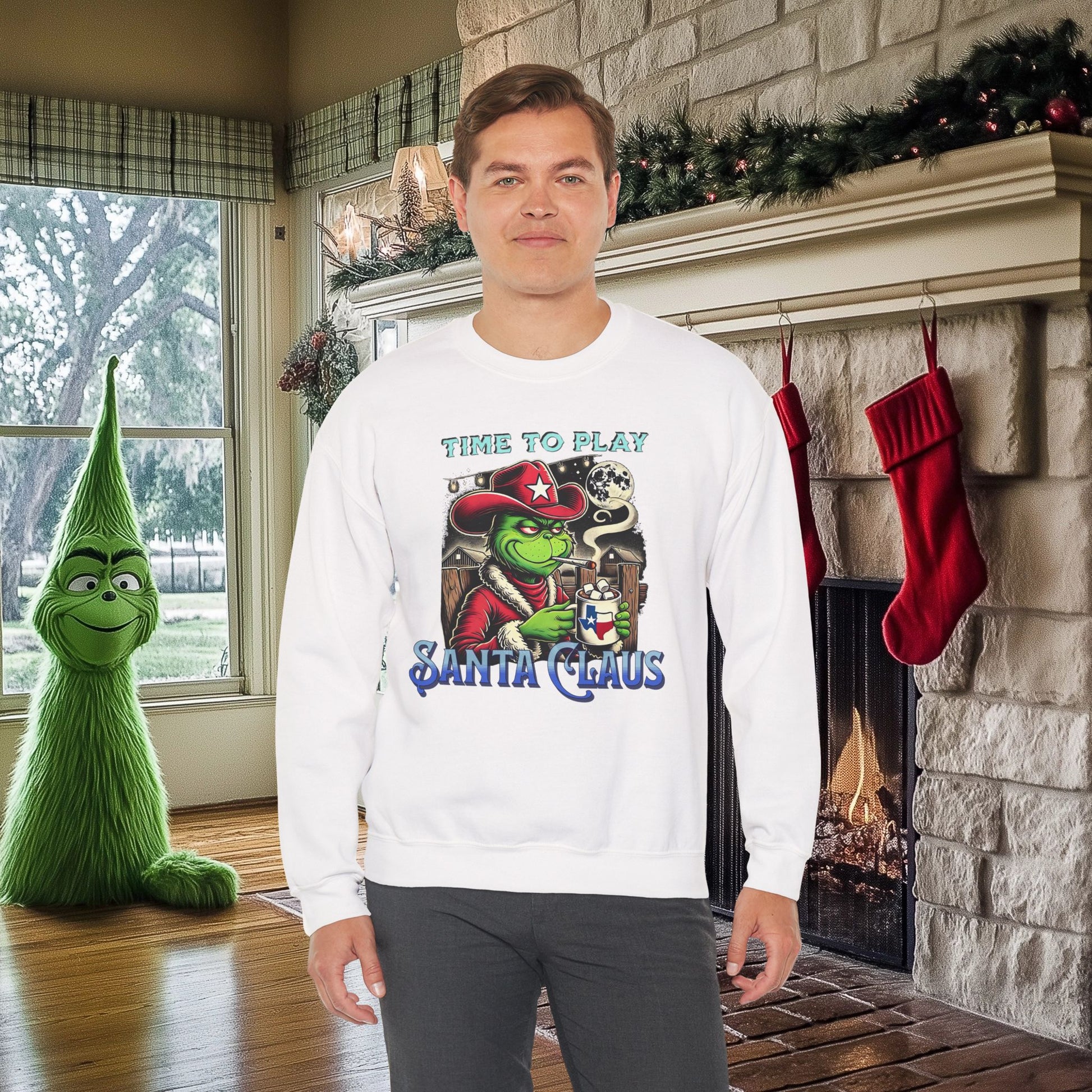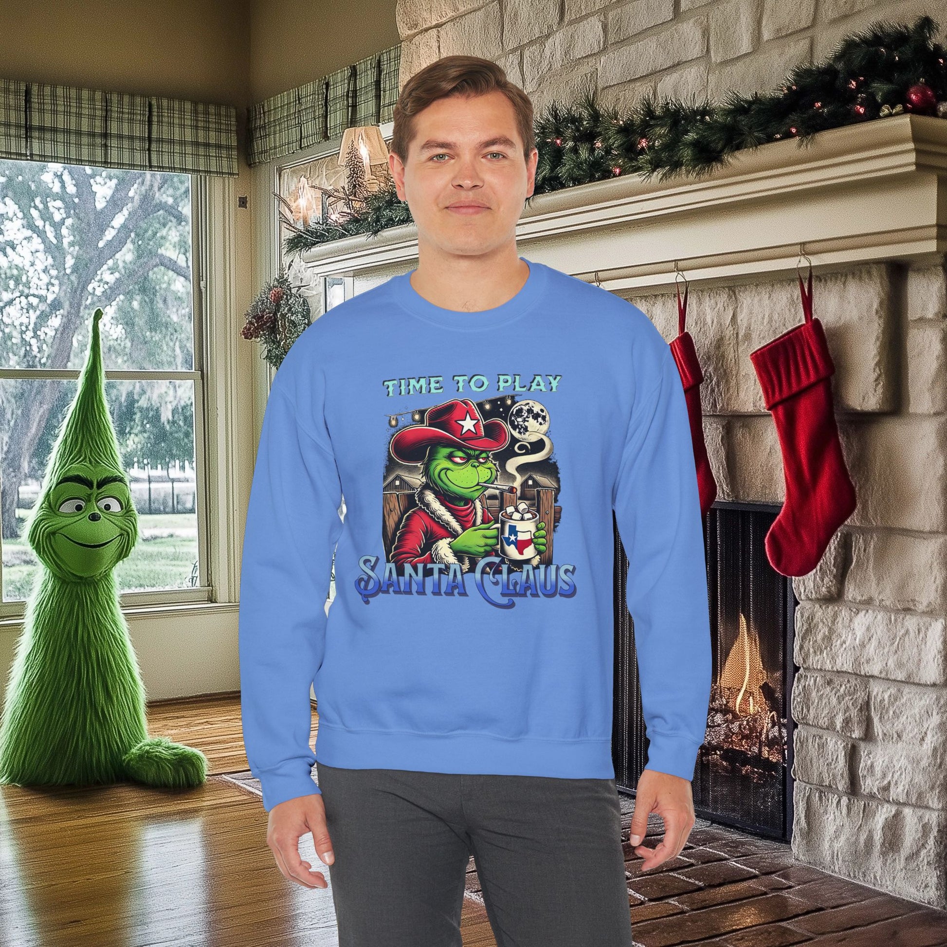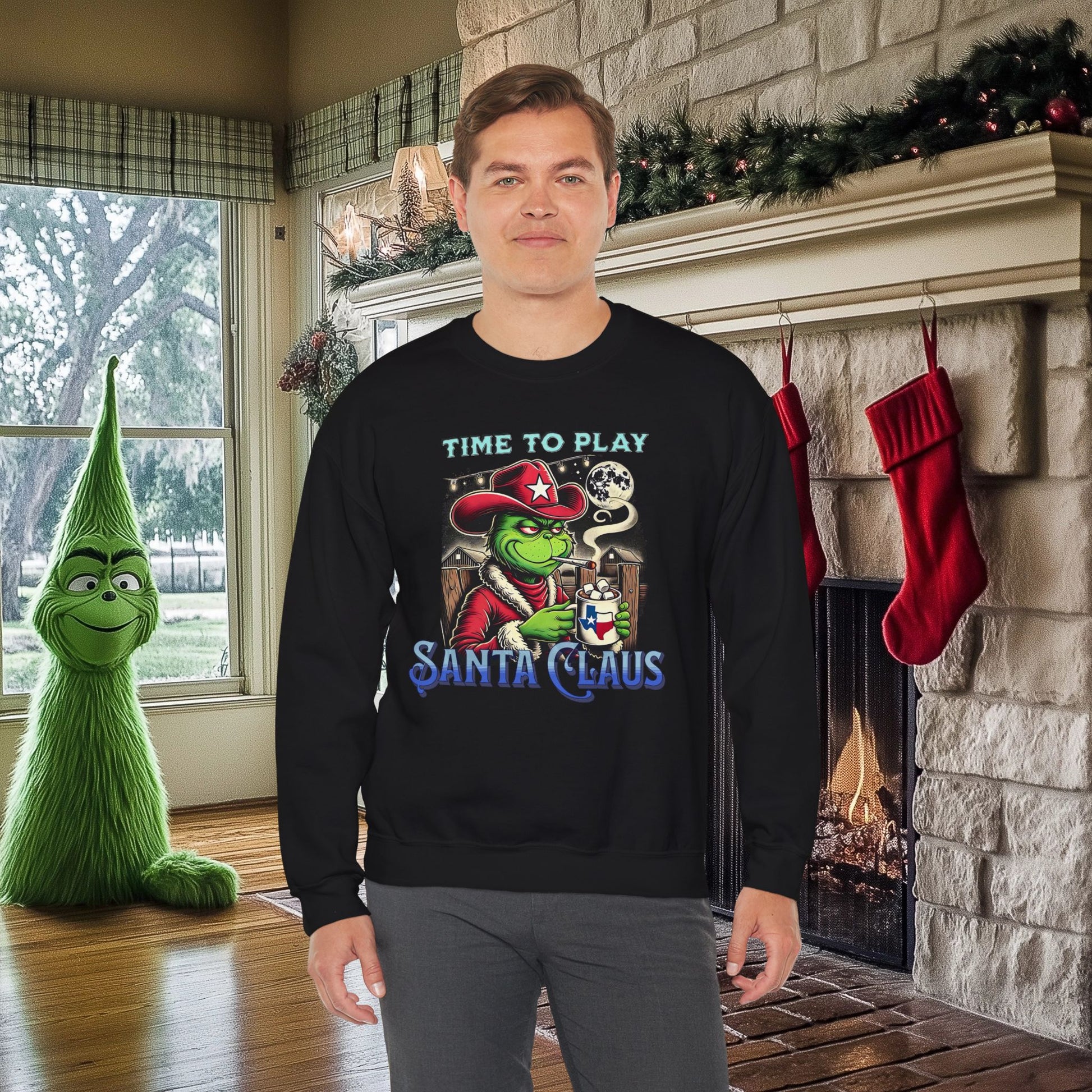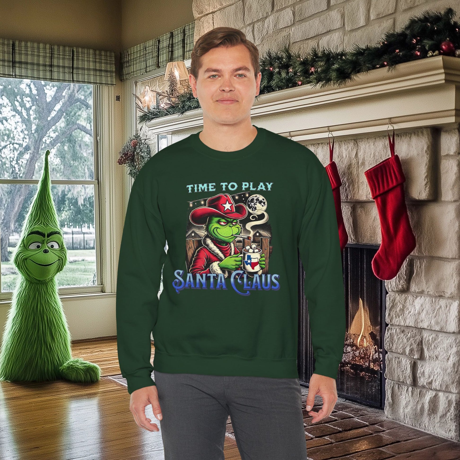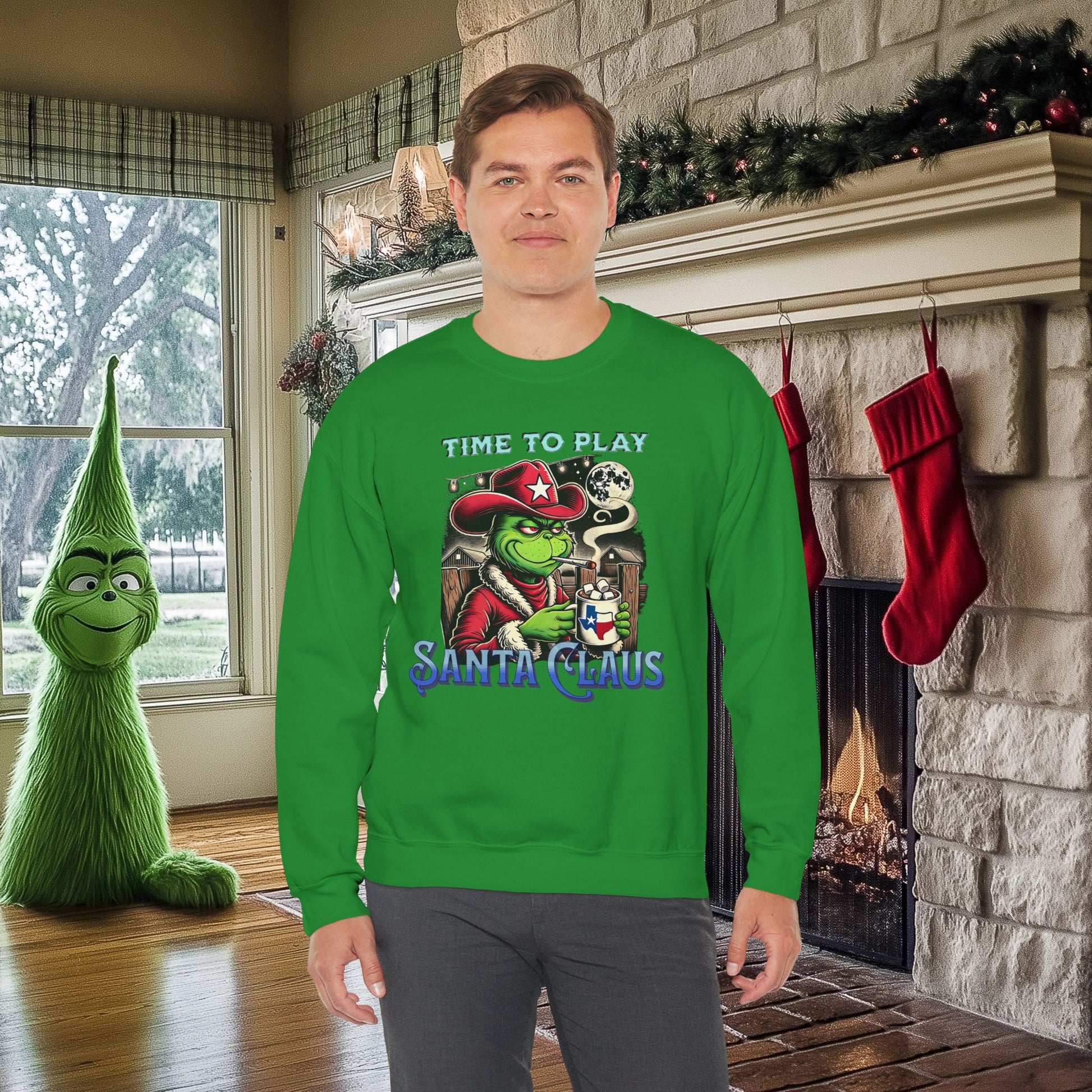 "Time to Play Santa Claus" Grinch-Inspired Texas Christmas Sweatshirt – Funny Holiday