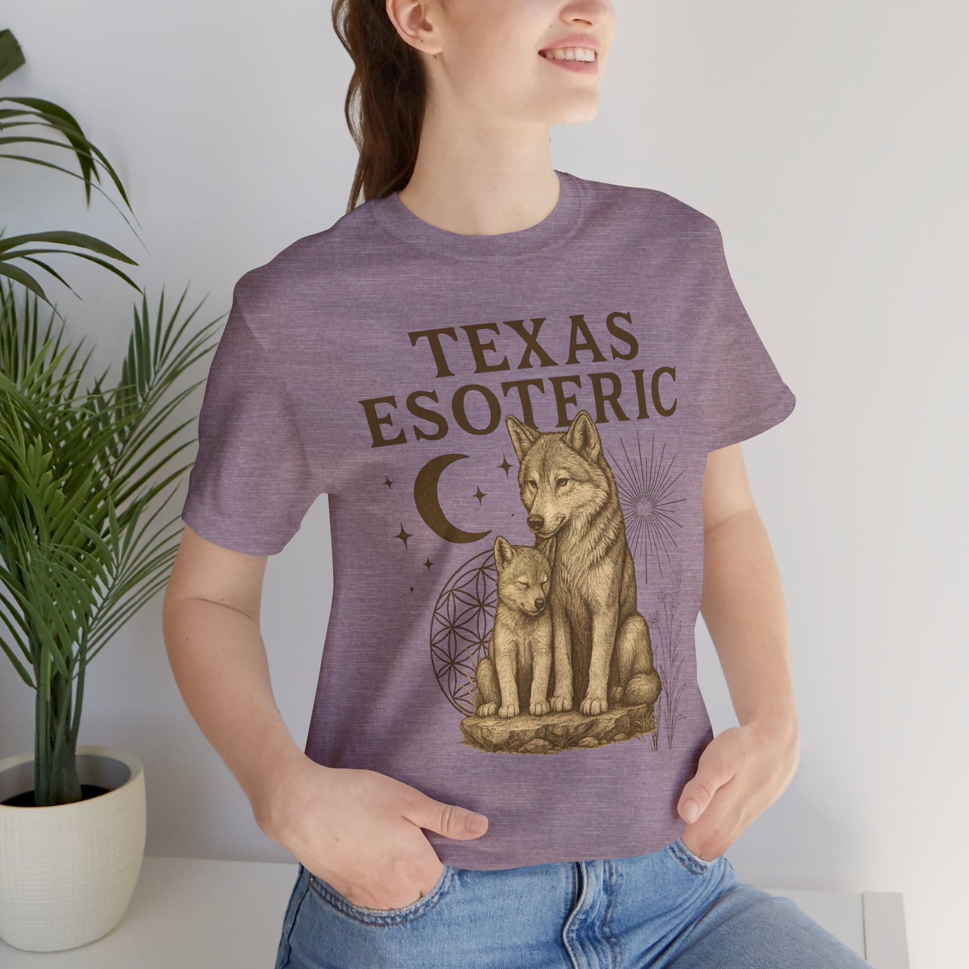A tender moment captured in timeless detail — the protective strength of the mother and the peaceful trust of her pup. This design weaves together sacred geometry, celestial symbols, and frontier spirit, making it both mystical and grounded. Printed in rich line work that shines beautifully across 8 colors. A perfect piece for nature lovers, dreamers, and those who run with the pack.